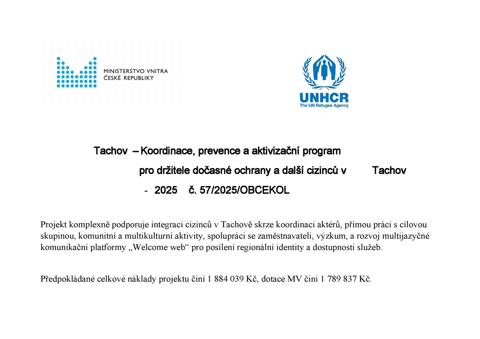 Projekt byl realizován jako reakce na aktuální potřeby cizinců dlouhodobě pobývajících na území města Tachov, zejména držitelů dočasné ochrany. Zaměřoval se na stabilizaci životní situace osob ohrožených sociálním vyloučením, podporu jejich integrace a posílení spolupráce mezi městem, neziskovými organizacemi a dalšími institucemi působícími v oblasti integrace cizinců.