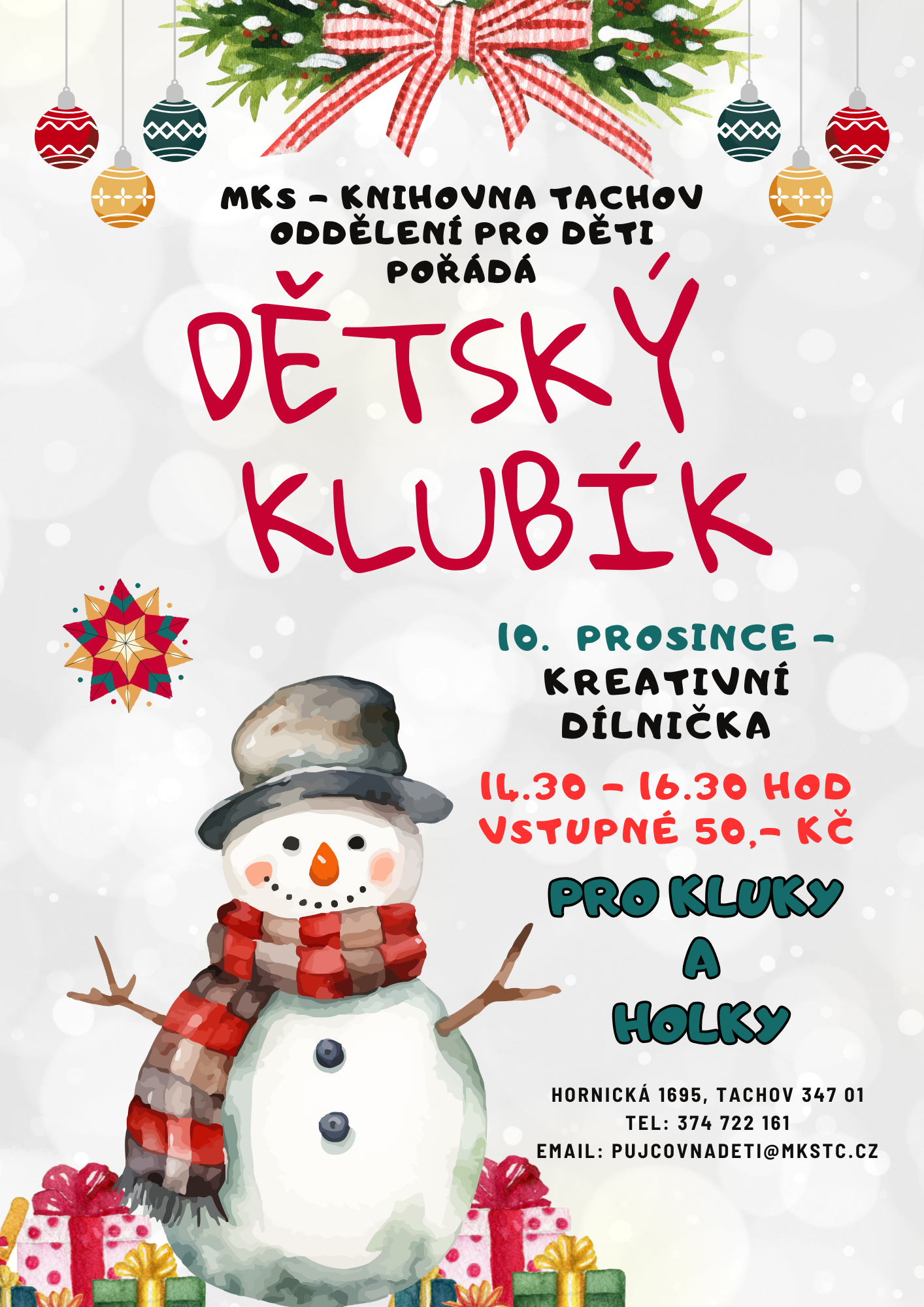 Zveme děti do našeho vánočního tvořivého klubíku, kde si společně užijeme odpoledne plné fantazie, radosti a sváteční nálady. Přijďte si vytvořit vlastní vánoční dekoraci, která rozzáří váš pokoj nebo udělá radost někomu blízkému.