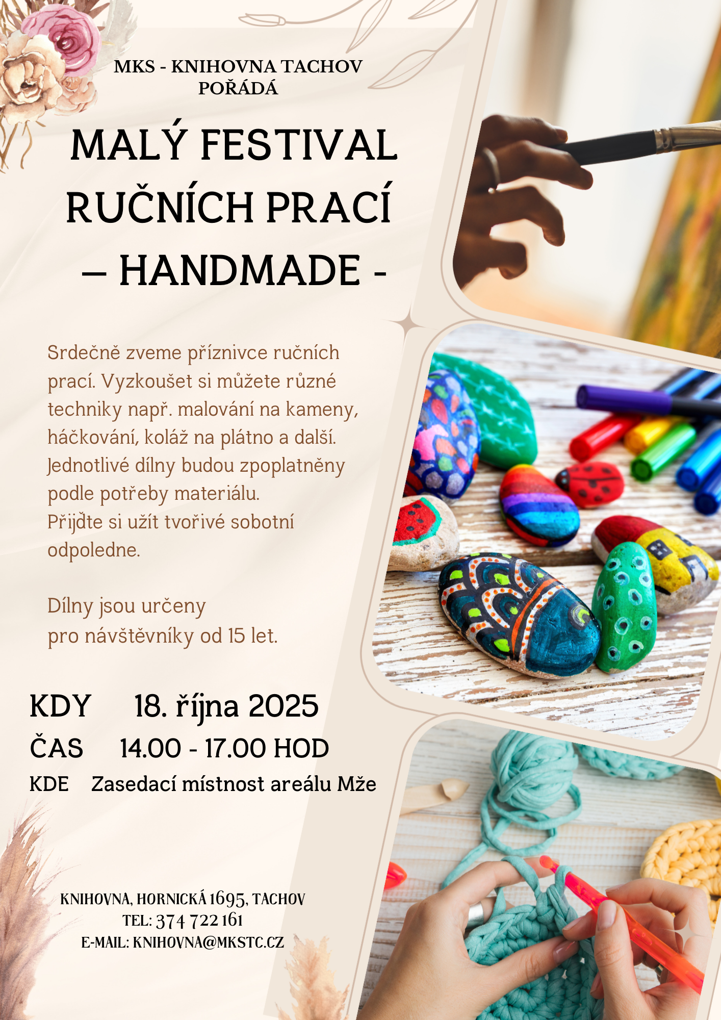Vyzkoušet si můžete různé techniky např. malování na kameny, háčkování, korálkování, koláž na plátno a další.