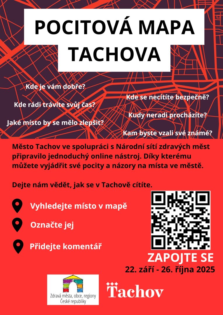 Protože právě vy, obyvatelé Tachova, znáte své město nejlépe. Každý hlas je důležitý a přispívá k tomu, aby město lépe odpovídalo potřebám svých občanů. Díky vašim podnětům získáme přehled o tom, jak Tachov vnímáte vy, obyvatelé města. Výsledky pomohou při plánování budoucího rozvoje, při úpravách veřejných prostranství nebo při řešení problémových míst.